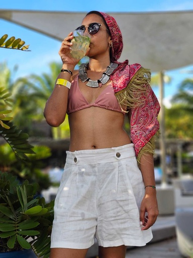 White linen shorts